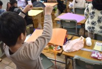 2年生が図工「さいりょうからひらめき」の制作。材料をよく見て、何につかえそうか考...