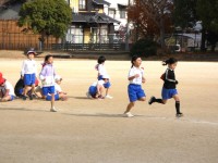 2年生が体育でマラソンの学習。腕をいっぱい振り、前に足を進めます。自己ベスト更新...