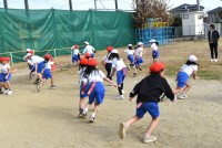 2年生が体育でしっぽとりの学習。体力アップとともに体幹も強くなります。すり抜け方...