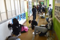 4年生が図工で「ほってすって見つけて」で彫る学習。動物の毛並みを彫刻刀で表現しま...