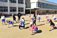 5年生が体育でマラソンの学習。目標は自己ベストをのばすこと。自分との戦いですね。