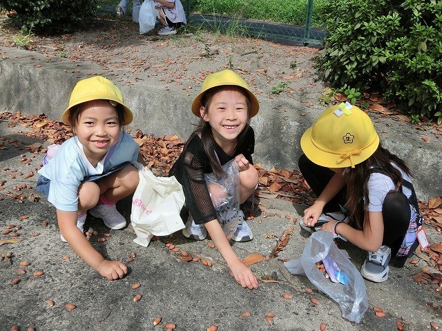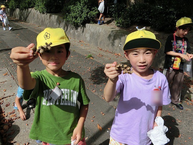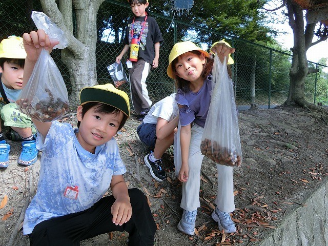 ドングリがたくさんあって、みんな夢中で拾っていました。