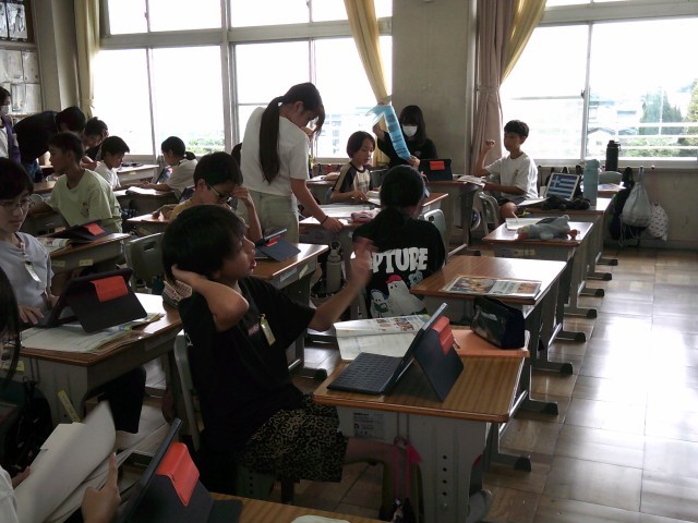 6年生は、ALTの先生とスピーキングのテストをしていました。