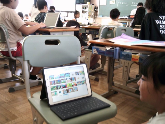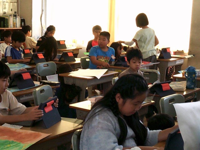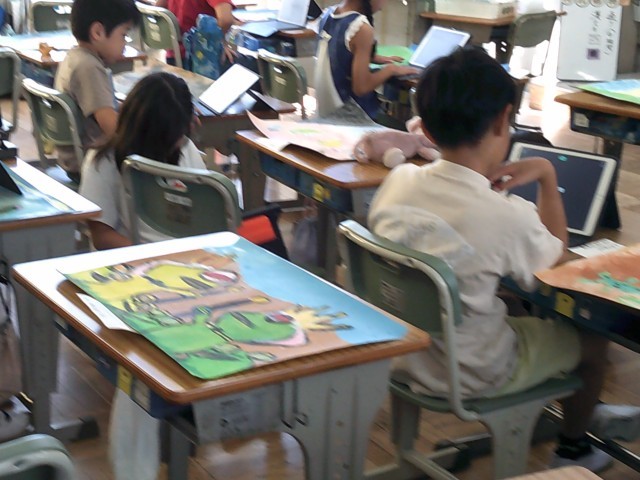 お話の絵が完成し、学級で鑑賞会をしていました。