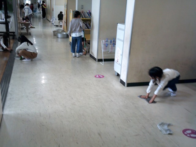 教室や廊下をきれいにしようと、1年生が頑張っています。