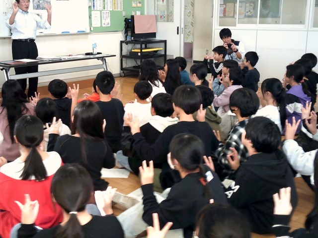6年生は、修学旅行に向けて、講師の先生をお招きして「ブッチャンワールド」を行いました。