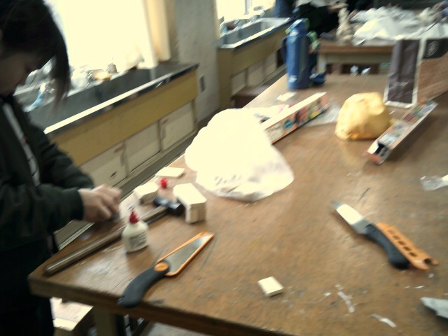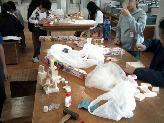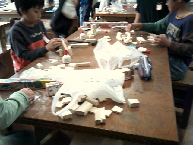 今日は切った部品を、ボンドや釘を使って組み立てていました。