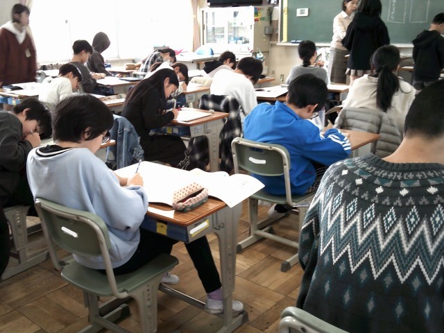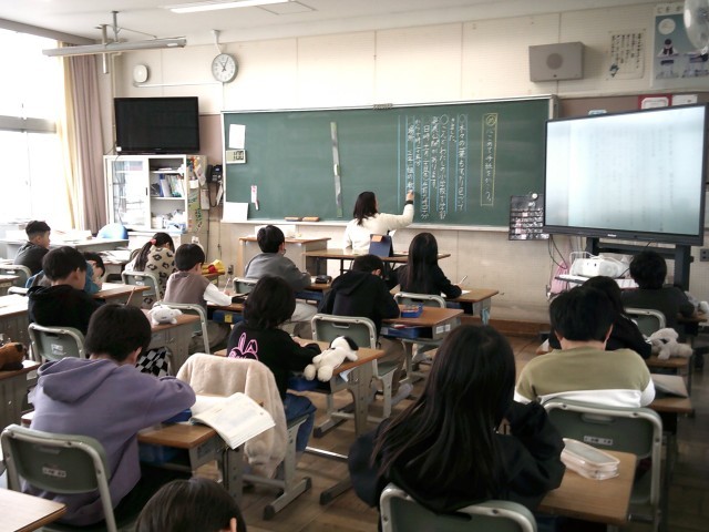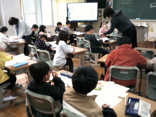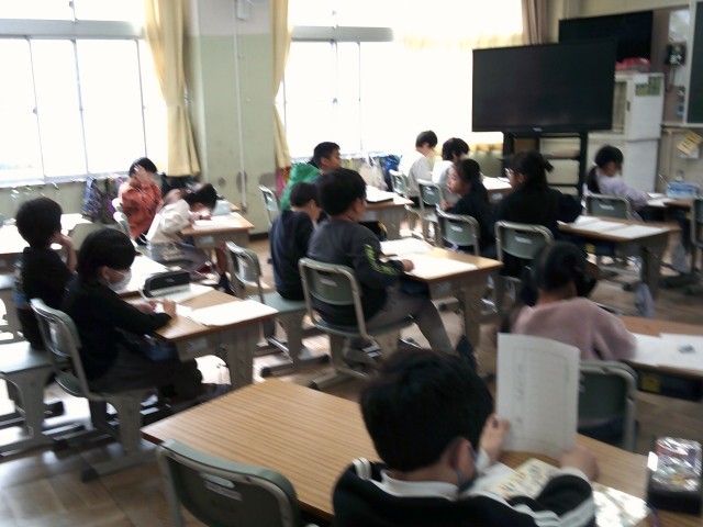 6年生書写、3年生国語、2年生算数と書写の時間です。