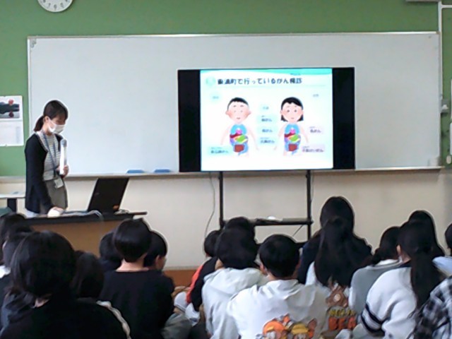 がんは早期発見で治療できること、生活習慣を整えて免疫力を高めること、検診を受けることなどを、クイズに答えながら学びました。