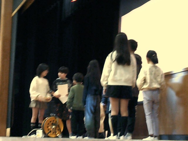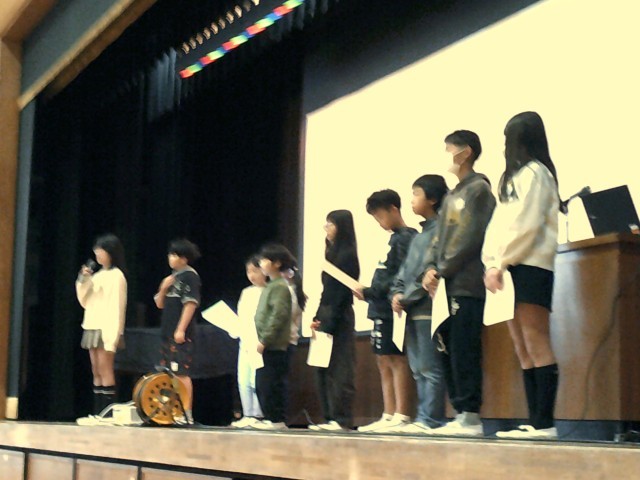 給食委員会より、もぐもぐ週間の表彰があり、学級の代表に賞状が渡されました。