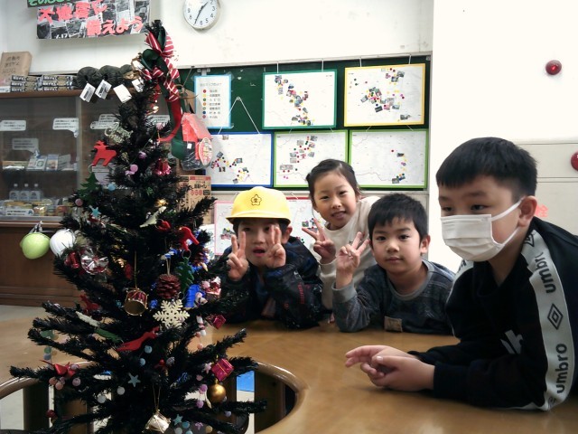昇降口のロビーに、クリスマスツリーを飾りました。
