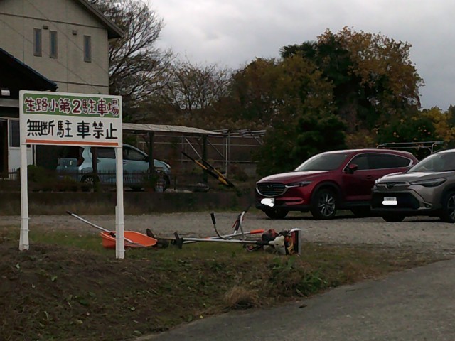 校舎南西の第2駐車場に、おやじの会のみなさんが作ってくださった看板が設置されました。