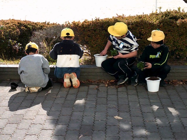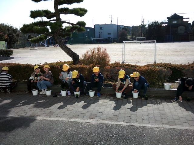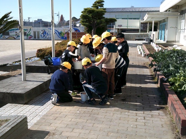 名前を付けて、教室前に運び水をかけました。