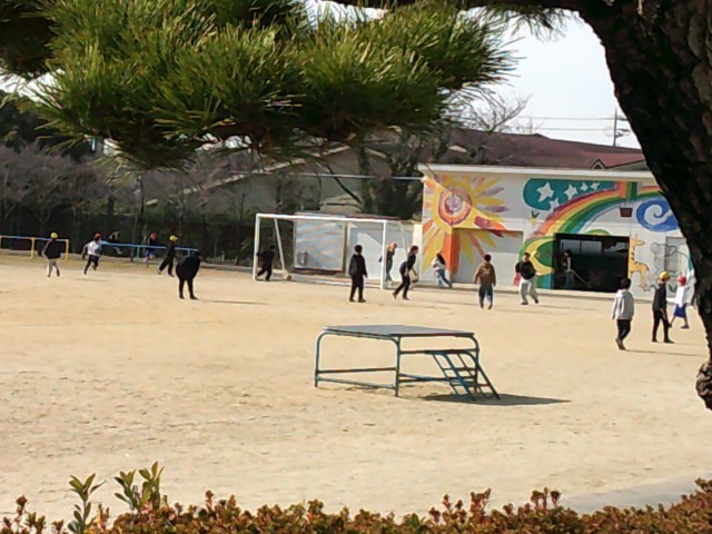 運動場には子どもたちと遊ぶ先生がたくさんいました。