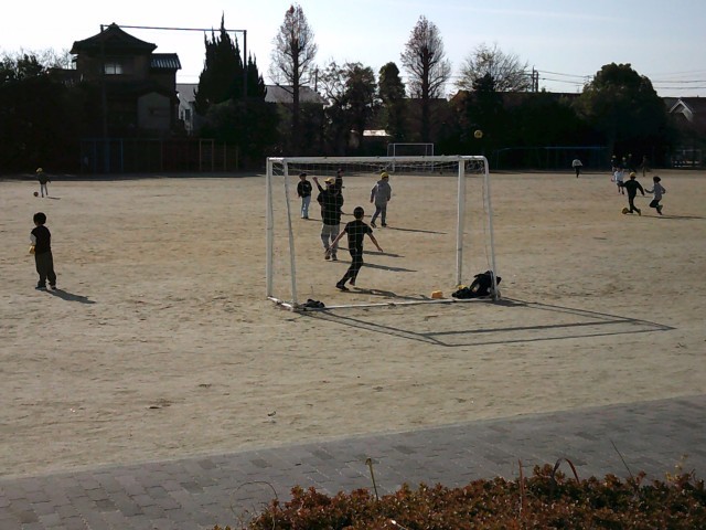 「暑いー。」と言いながら鬼ごっこやサッカーをしています。