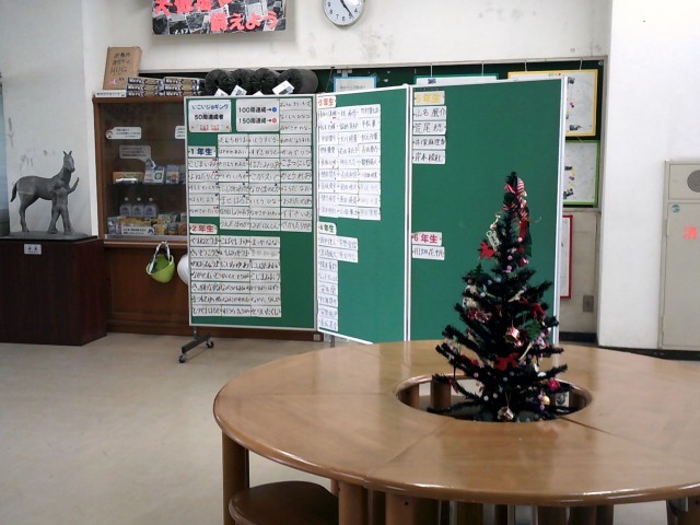 昇降口のクリスマスツリーが似合わないくらい暖かいです。