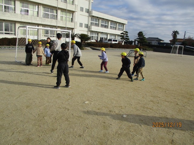 運動場では、だるまさんがころんだを「サンタさんがころんだ」にして遊びました。