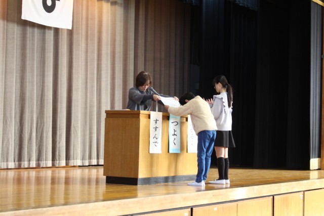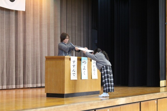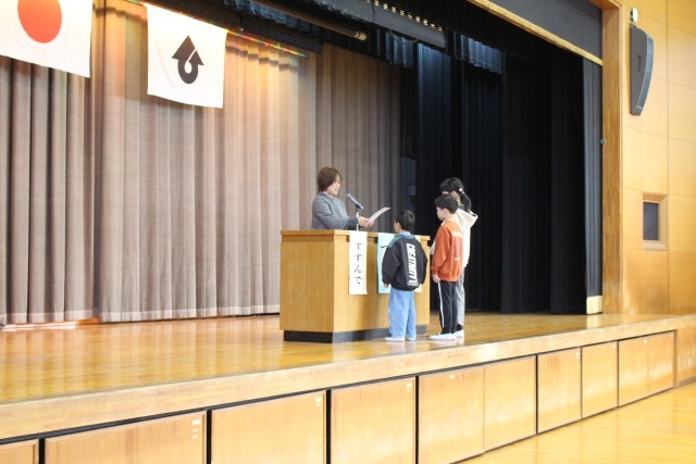 式の後は、表彰と冬休みの生活についてお話がありました。