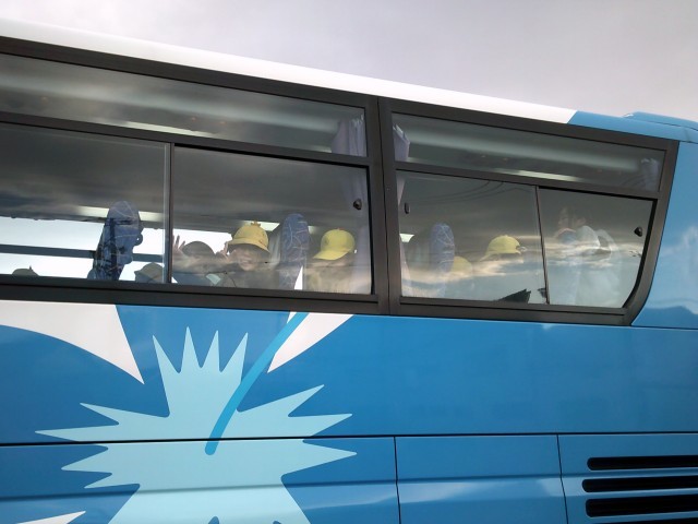 朝、バスに乗って三州足助屋敷に出発しました。