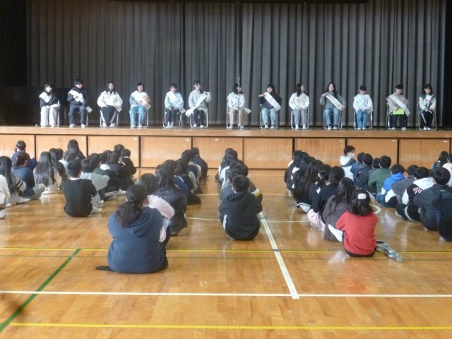 13名の立候補者(当日体調不良のため欠席した立候補者は推薦責任者が代理)が、生路小学校のためにという思いで堂々と演説をしました。