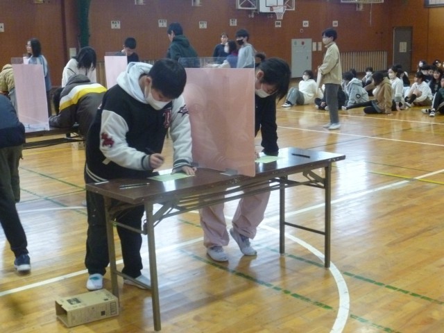6時間目に体育館で令和8年度前期児童会役員選挙を行いました。