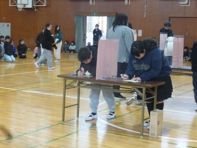 今回は卒業を間近に控えた6年生も投票をし、来年度高学年になる3年生は見学をしました。