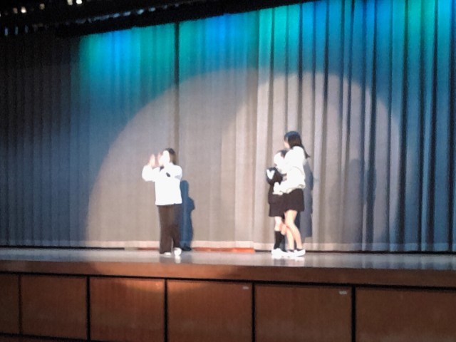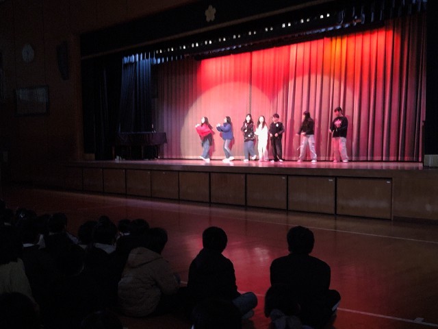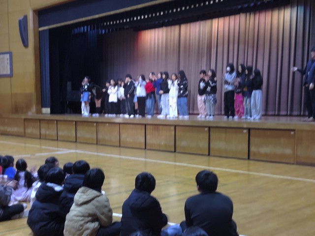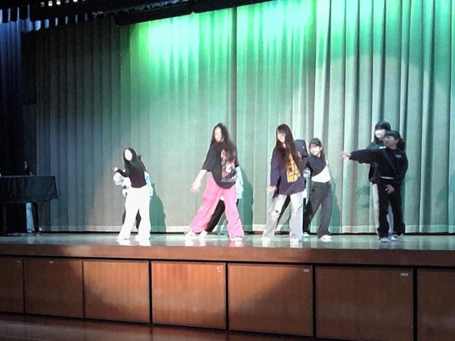 いこいの時間に、体育館でダンスクラブの発表会が行われました。