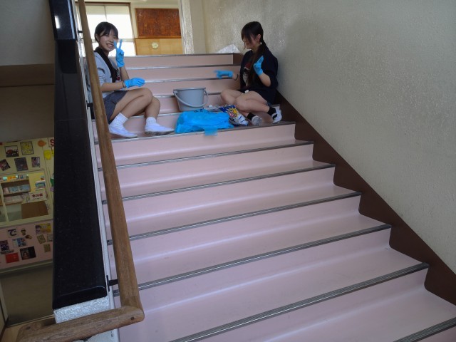 7つのグループに分かれて、学校のいろいろな場所をきれいにしてくれました。