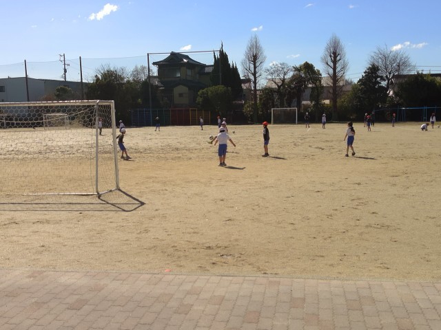 3年生は、運動場でサッカーをしていました。