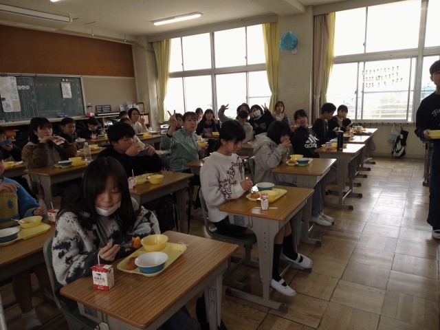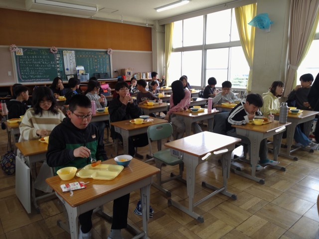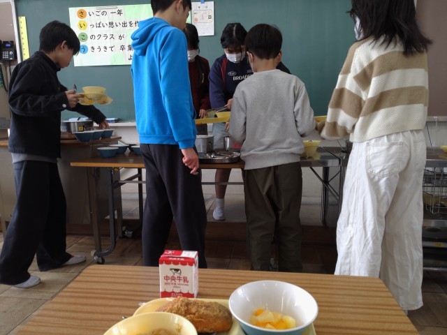6年生は明日の卒業式を前に、お祝い給食をいただきました。