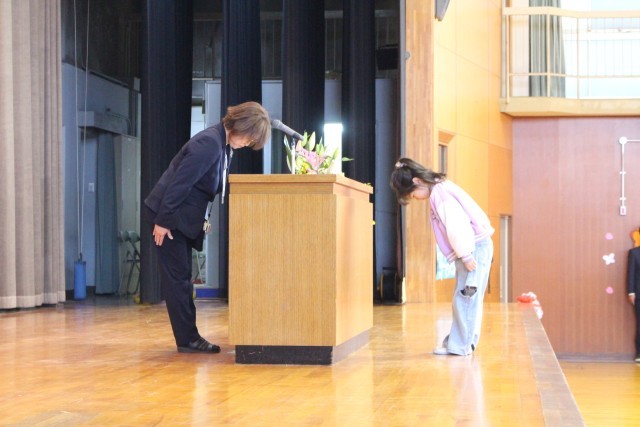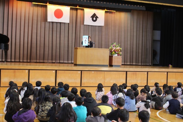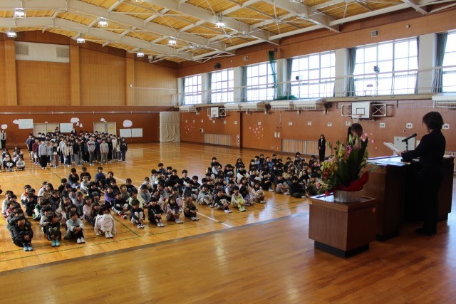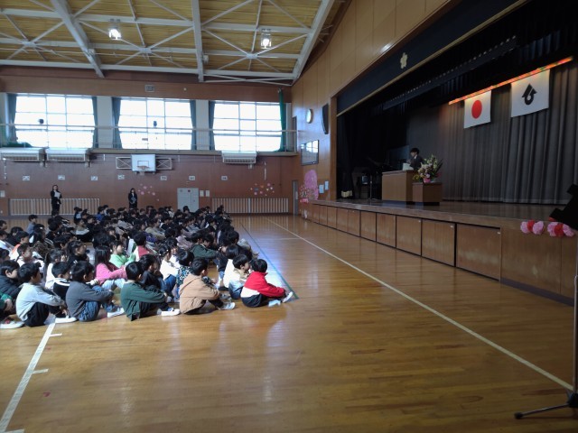 その後、校長先生のお話、担当の先生から春休みの生活のお話を聞きました。