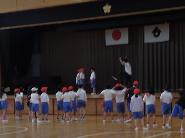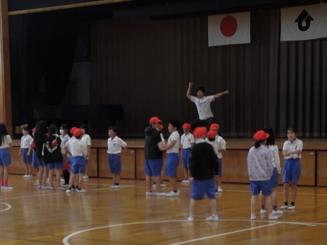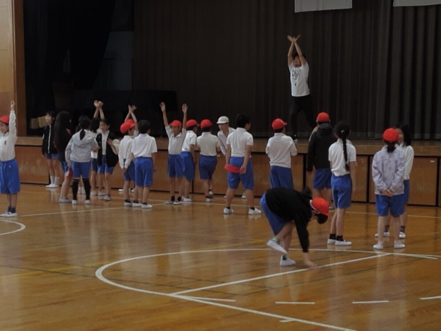 先生の動きを1名が見て、言葉の説明だけでグループの友達に伝えています。