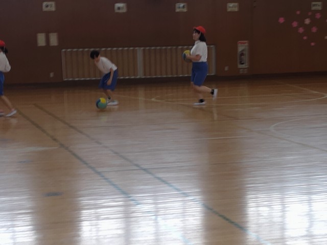 先にボールを転がして、転がしたボールに追いつこうと頑張って走っています。
