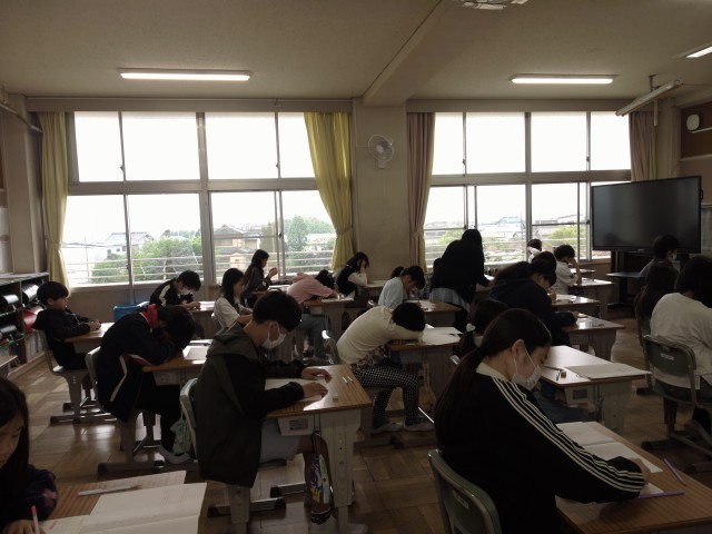 6年生は、国語と算数のテストに取り組みました。