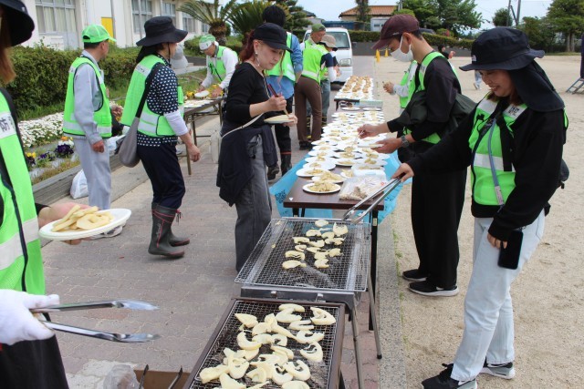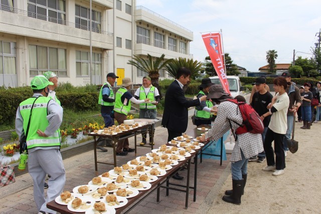 タケノコ掘りを楽しんだ後は、焼きタケノコとタケノコがたっぷり入ったおにぎりをいただきました。