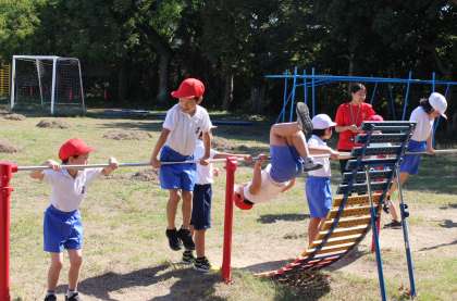 ○鉄棒運動で,逆上がりの練習をしました。
