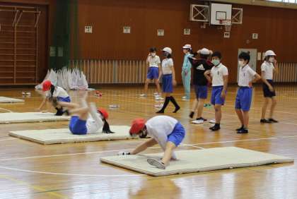 ※前転・後転から始まり,開脚前転を中心に練習していました。