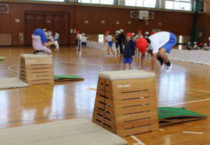 ※跳び箱への手のつき方(手をつく位置)や体の使い方(背中の丸め