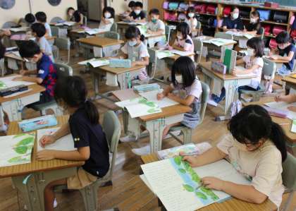 ※初めて本文を読んだ後で,国語ノートに各自の感想を書いていました。(どのような言葉で感想を書くのか,考えをまとめながら書いていました)