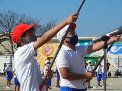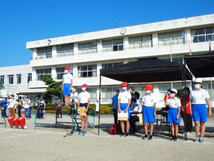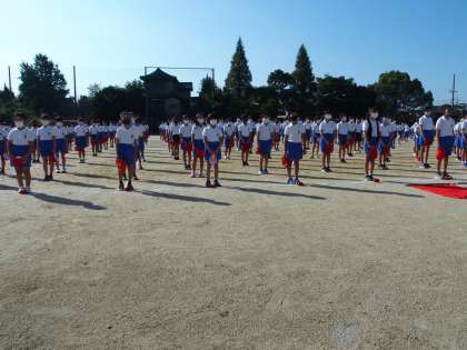 晴天に恵まれ,多くの保護者の皆様にお越しいただき,子どもたちの励みになりました。ありがとうございました。開会式の様子です。