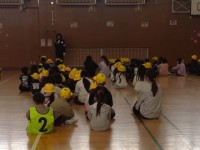 ※クラスが4チームに分かれ,体育館2面分を使ってゲームをしていました。(声を出して動きながら,ゲームに積極的に取り組んでいました)