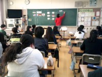 ※「 What do you do on (行事名) ? 」と質問し,「 I usually play ○○.」と答える形式に従って,行事名や行うことを学習プリントに記入してから,教室内を移動して質問し合っていました。リラックスしたようすで,次々と質問しては答えていました。