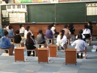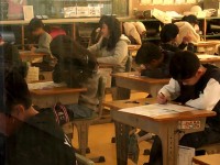 6年生は外国語の学習で,注目した外国について調べ,英文にまとめました。各自が注目した国について,タブレット端末を使って検索し,ワークブックの基本英文(下記)の空欄部分に英単語を書いて,英文を完成させていました。