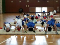 何色もの色紙を細長く切り、ボール紙(事前に、長円形に切っておいた物)の回りに糊付けして、ミノムシを作りました。また、カレンダー台紙に、もみじの型を切り抜いた画用紙を当て、赤色・橙色の絵の具を縫って、もみじの柄を台紙に付けました。そして、ミノムシに毛糸を付けて台紙に貼り、日付を書いてカレンダーを仕上げていました。