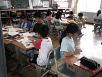 3年生は、書写(毛筆)の学習で、「光」を練習しました。一文字のため、書く位置や文字の大きさを考えるとともに、「縦線・横線・止め・・曲がり・払い・はね」と、多くの要素が含まれる字なので、それぞれに気を付けながら練習していました。