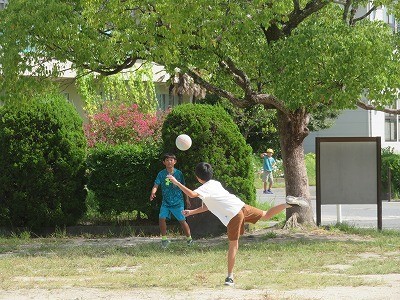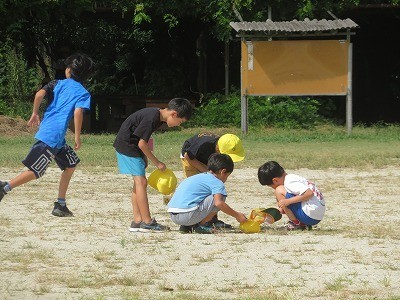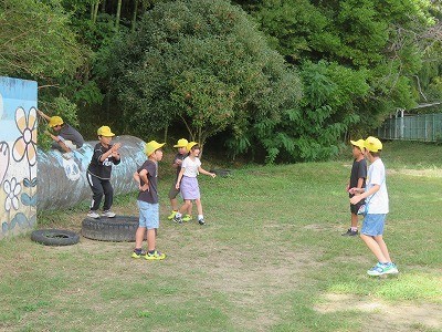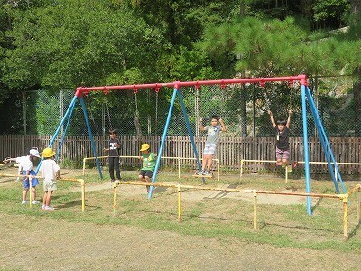 遊具で遊ぶ子、ボール遊びをする子、鬼遊びをする子、虫とりをする子・・・思い思いに楽しんでいます。