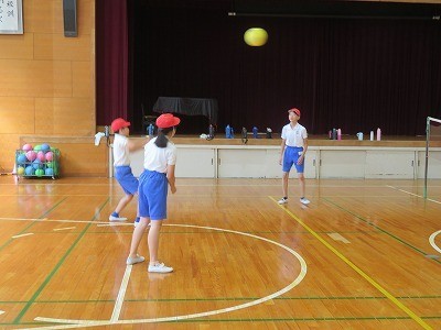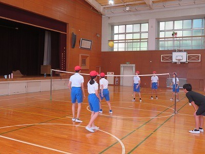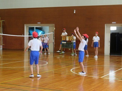 6年生が体育でソフトバレーボールに取り組んでいます。