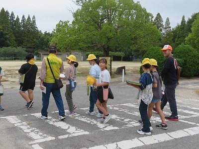 東浦町や藤江地区の防災ボランティアの方に教えていただきながら、方面別に分かれて行いました。