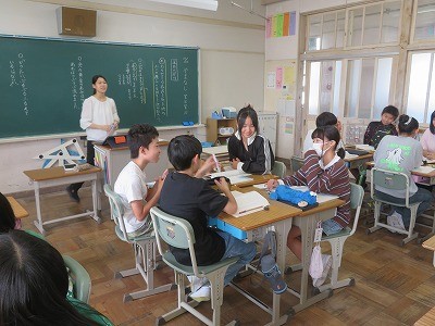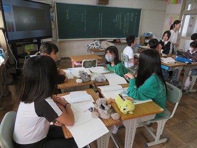 カワセミの存在を知ったときのカニの親子の気持ちを話し合いました。
