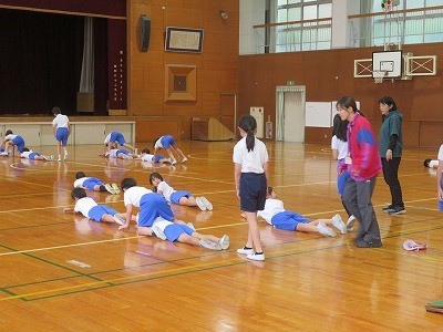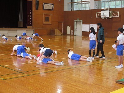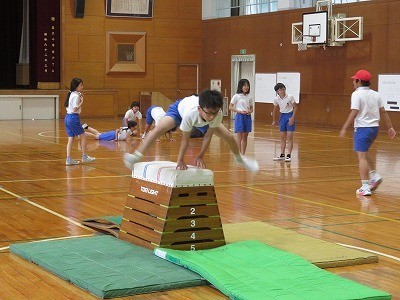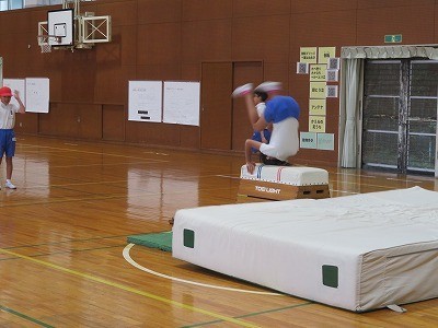 グループで体ほぐしの運動を行ったあと、いよいよ跳び箱に挑戦です。